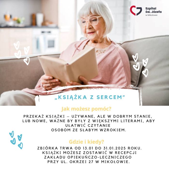 Do końca stycznia (31.01) prowadzona jest zbiórka książek, które trafią do seniorów przebywających w szpitalu oraz podopiecznych zakładu opiekuńczo-leczniczego.