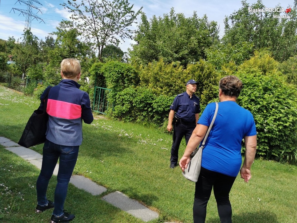 Dzielnicowy z Komisariatu Policji w Łaziskach Górnych asp. Michał Czerepkowski w czasie codziennej służby obchodowej regularnie odwiedza tereny ogródków działkowych, gdzie w rozmowach z działkowcami przekazuje cenne rady, jak ustrzec się przed zniszczeniem lub kradzieżą mienia.