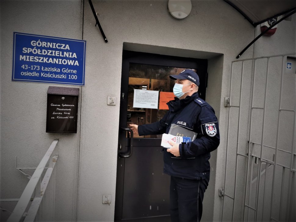 16 kwietnia dzielnicowy z łaziskiego komisariatu, asp. Michał Czerepkowski, z zapasem ulotek pojawił się w jednej z miejskich spółdzielni mieszkaniowych, gdzie na ręce prezesa przekazał pakiet materiałów, które już w najbliższych dniach trafią na tablice informacyjne w każdym z budynków mieszkalnych należących do spółdzielni.