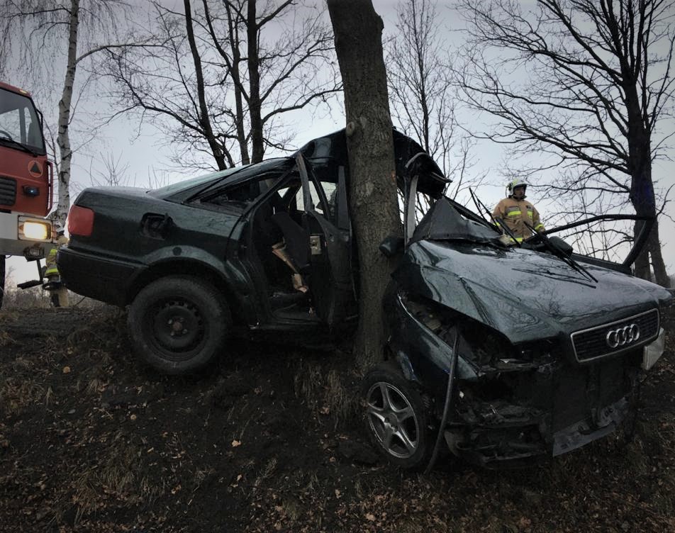 Podczas minionego weekendu doszło do wyjątkowo groźnie wyglądającej kolizji. Kierujący audi stracił panowanie nad pojazdem, a następnie uderzył w przydrożne drzewo. Jego życiu nie zagraża niebezpieczeństwo.