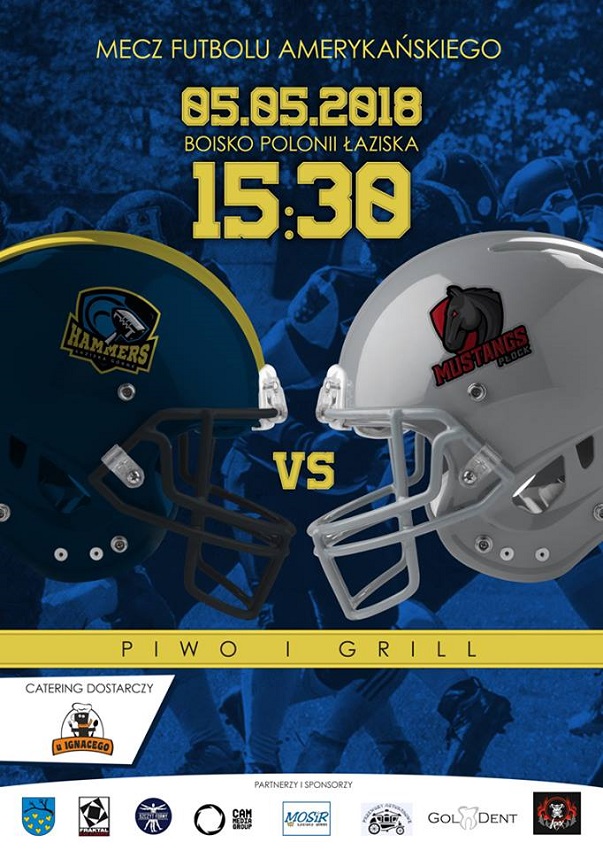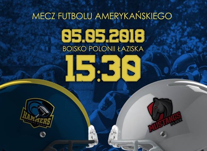 Zapraszamy 5 maja 2018 na mecz futbolu amerykańskiego, gdzie zmierzą się drużyny Hammers Łaziska Górne vs.Mustangs Płock.