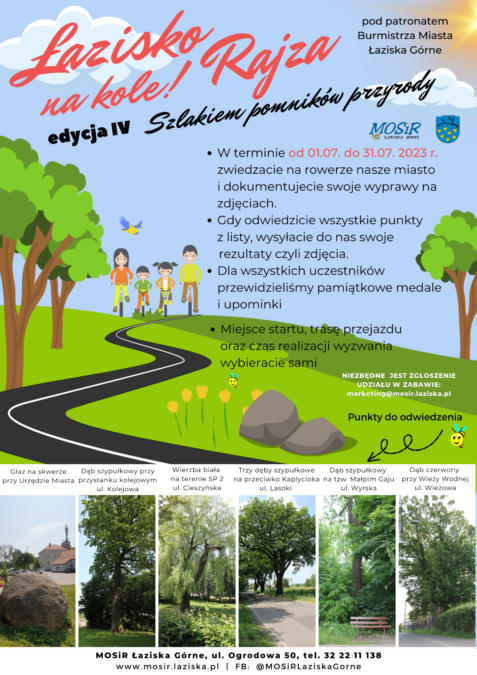 W terminie od 1- do 31 lipca zwiedzacie na rowerze nasze miasto i dokumentujecie swoje wyprawy na zdjęciach. Gdy „zaliczycie” wszystkie punkty z listy, wysyłacie do UM swoje rezultaty, czyli zdjęcia, a urząd miejski wysyła Wam pamiątkowe medale.