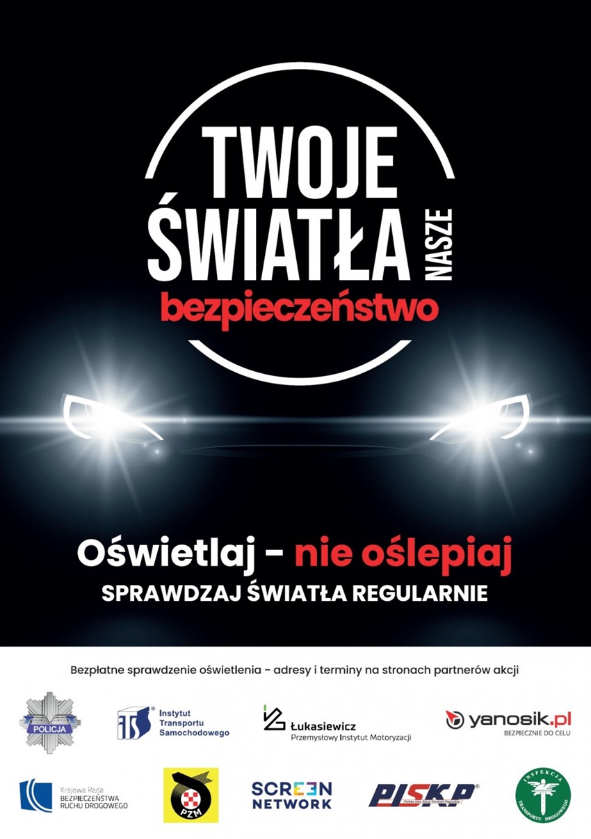 22 października, ruszyła ogólnopolska, V już edycja kampanii: "Twoje światła - Nasze Bezpieczeństwo". Akcja, która potrwa do 15 grudnia br., ma na celu zwrócenie uwagi na właściwie oświetlenie pojazdów i jego wpływ na bezpieczeństwo w ruchu drogowym. Podczas działań w dniach 24 października oraz 7 i 21 listopada, kierowcy będą mogli bezpłatnie sprawdzić światła w swoich pojazdach na wybranych stacjach diagnostycznych.