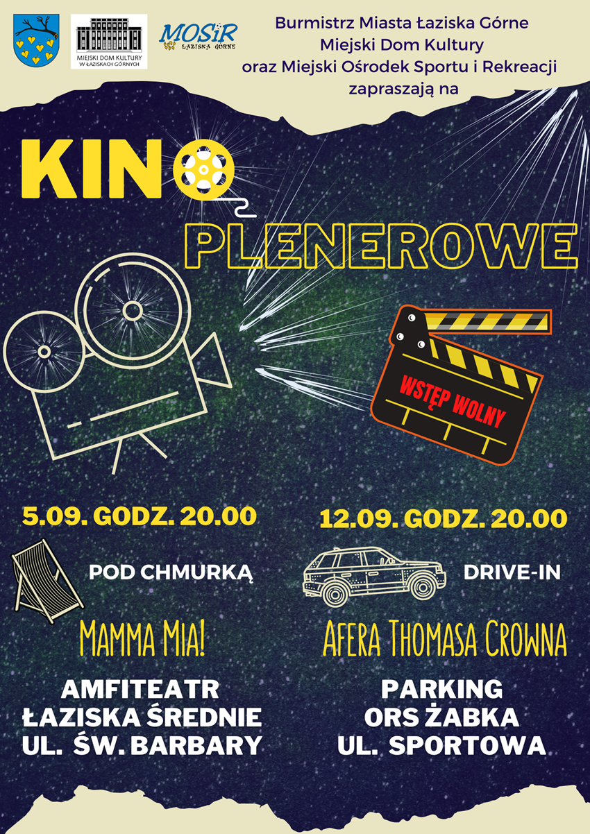 Burmistrz Miasta Łaziska Górne oraz Miejski Ośrodek Sportu i Rekreacji zapraszają na Kino plenerowe organizowane 5 i 12 września.