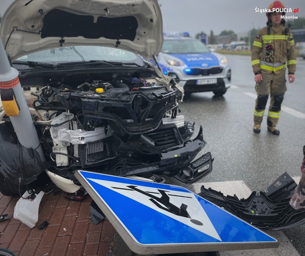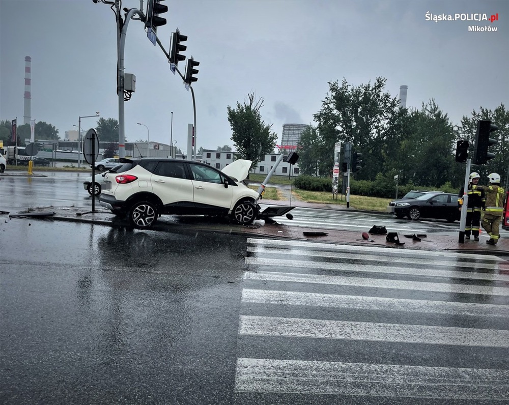 Do zderzenia się samochodów doszło w sobotę 30 lipca około godziny 12.30 na skrzyżowaniu DK 81 z ulicą Cieszyńską na pasie w kierunku Żor. Według ustaleń policjantów drogówki, opartych między innymi na relacji świadków, kierujący audi A6 wjechał na skrzyżowanie na czerwonym świetle. Kierowany prze 61-latka samochód uderzył w wyjeżdżające z ulicy Cieszyńskiej renault. W wyniku kolizji pojazdów uszkodzeniu uległa także sygnalizacja świetlna oraz znaki drogowe.