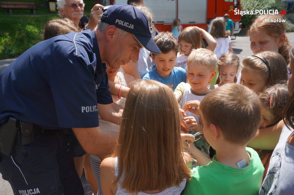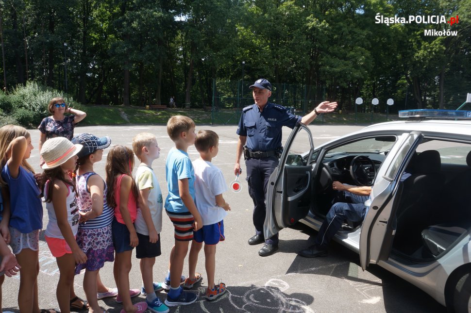 Wczoraj po południu, mikołowscy stróże prawa spotkali się z dziećmi, które swój wolny czas spędzają w mikołowskim Domku Parkowym w ramach półkolonii "Wakacyjny Zawrót Głowy".