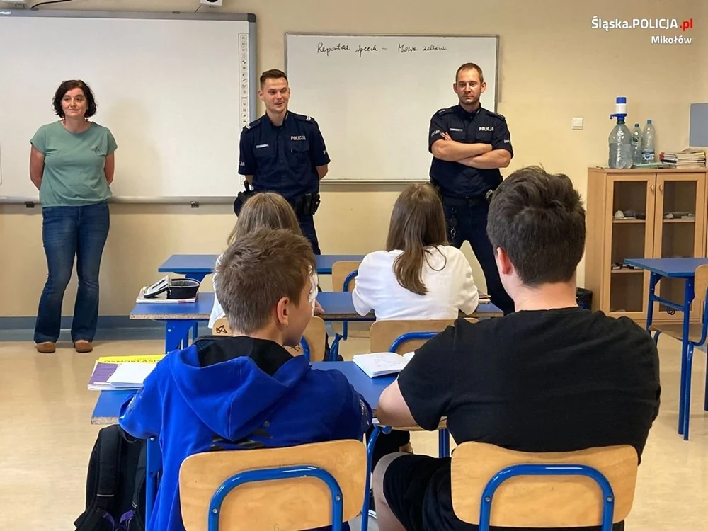 Dwaj dzielnicowi z łaziskiej jednostki Policji rozpoczęli właśnie cykl spotkań w ramach kampanii „Safe in Polnad”. Odwiedzili uczniów Szkoły Podstawowej nr 2 w Łaziskach Górnych, wśród których są także dzieci pochodzące z objętej wojną Ukrainy. Korzystając z obecności tłumacza języka ukraińskiego mundurowi rozmawiali z uczniami na temat bezpieczeństwa nadrodze oraz zasad, jakimi powinni kierować się podczas zbliżających się wakacji.
