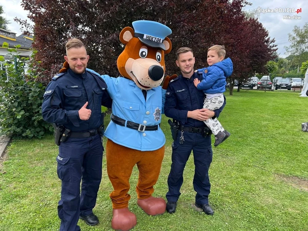 Górniczy festyn rodzinny odbył się 3 września na terenie ORS Żabka w Łaziskach Górnych. KWK Bolesław Śmiały, który był organizatorem imprezy, zaprosił do jej udziału także łaziskich dzielnicowych. Sierż.sztab. Patryk Stalmach oraz st. sierż. Sebastian Kapias zabrali ze sobą policyjną maskotkę – sierżanta Hektora. Mundurowi realizowali profilaktyczne założenia działań „Bezpieczna droga do szkoły”. Wraz z poradami dotyczącymi bezpieczeństwa na drodze, policjanci mieli okazję pokazać najmłodszym mieszkańcom miasta jak wygląda wyposażenie radiowozu, czym są środki przymusu bezpośredniego oraz jaka jest rola sierżanta Hektora.
