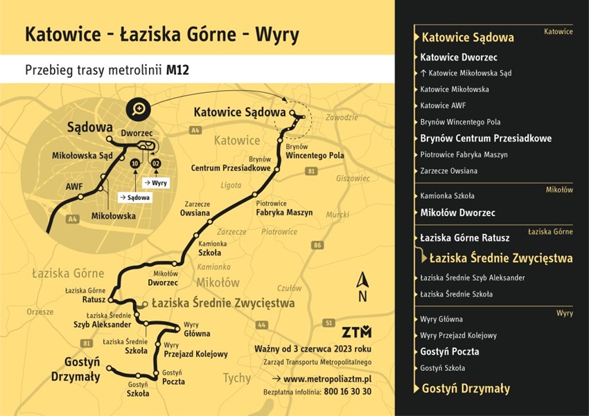Linia oznaczona jako M12 zapewni bezpośrednie połączenie gminy Wyry z Katowicami oraz powiększy ofertę przewozową w Mikołowie, Łaziskach Górnych i Katowicach. Nowe połączenie umożliwi szybkie przemieszczanie się pomiędzy centrum Katowic, Centrum Przesiadkowym Brynów, Centrum Przesiadkowym w Mikołowie oraz gminami Łaziska Górne i Wyry.