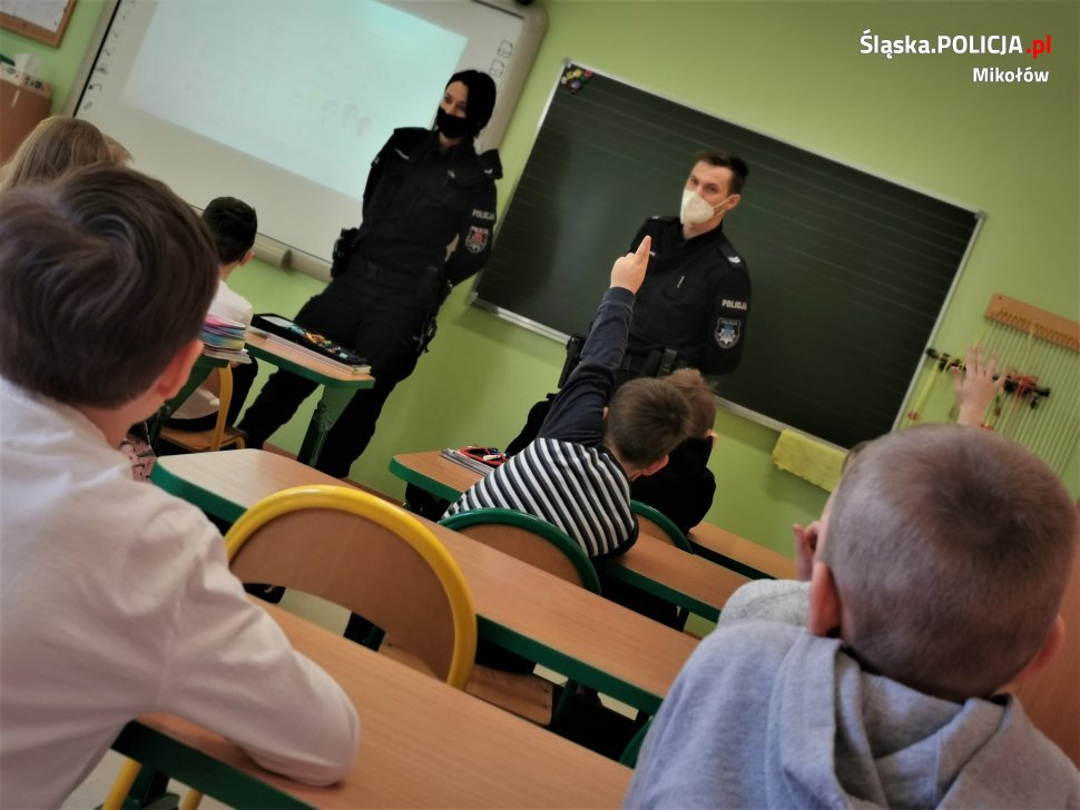 Policyjna profilaktyk z mikołowskiej komendy oraz dzielnicowy łaziskiego komisariatu zawitali w Szkole Podstawowej nr 2 w Łaziskach Górnych. Odwiedzili uczniów klas I, by przypomnieć o tym, że bezpieczeństwo, w różnych sytuacjach codziennego życia, to nasza wspólna sprawa, a tymi, którzy powinni o nie dbać, jesteśmy my sami. Każdy z nas powinien stosować się do ustalonych reguł postępowania.