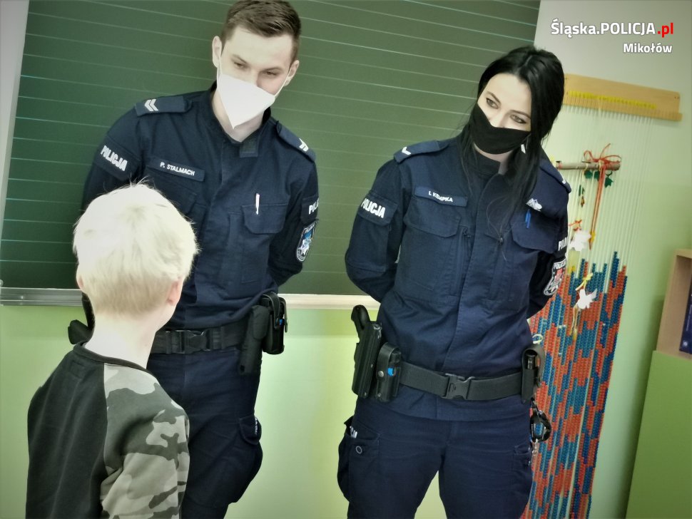 Mundurowi przekazali uczniom najważniejsze informacje dotyczące między innymi bezpiecznych zachowań na placu zabaw, a także reguły postępowania kiedy dziecko się zgubi lub zaczepi je obca osoba. Omówili podstawowe zasady bezpiecznego poruszania się po drodze oraz przypomnieli numery alarmowe. Apelowali o noszenie odblaskowych elementów. Poza tematyką ruchu drogowego policjanci nawiązali do okresu nauki zdalnej i 'złodzieja czasu" jakim staje się nadmierne korzystanie z urządzeń do obsługi Internetu. Wyjaśnili czym jest netykieta i jak ważny jest szacunek do drugiego człowieka także w przestrzeni internetowej.