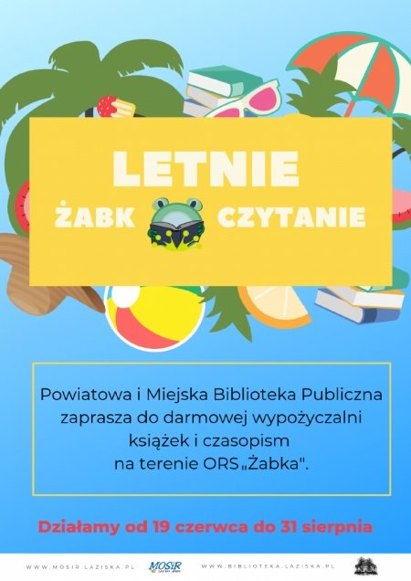 Powiatowa i Miejska Biblioteka Publiczna w Łaziskach Górnych przypomina, że wspólnie z MOSiR Łaziska Górne zaprasza do darmowej wypożyczalni książek i czasopism na terenie ORS Żabka.