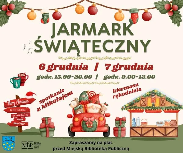 Miejska Biblioteka Publiczna w Łaziskach Górnych serdecznie zaprasza na wyjątkowy Jarmark, który odbędzie się w dniach 6 grudnia (15:00-20:00) oraz 7 grudnia (9:00-13:00) na skwerze przed biblioteką.
