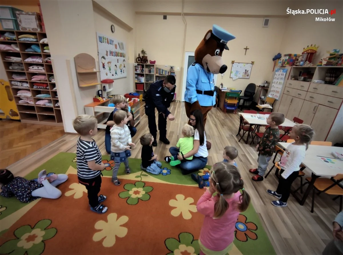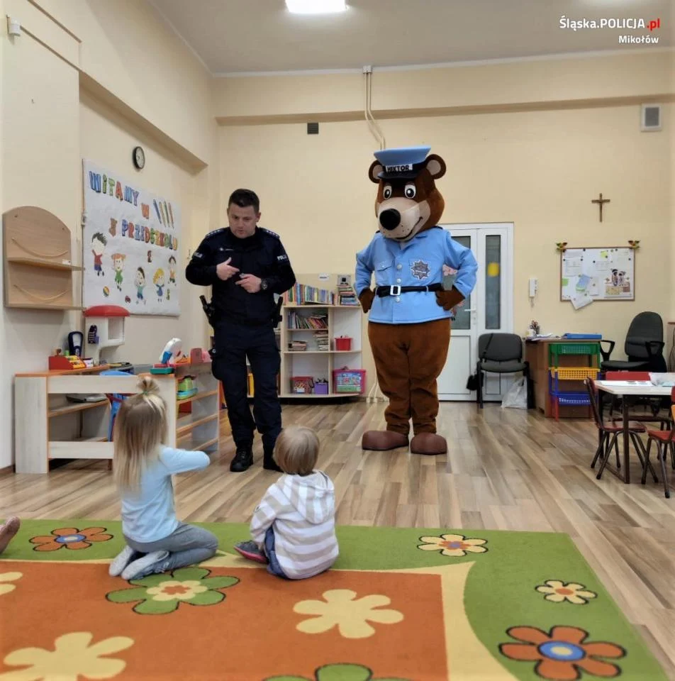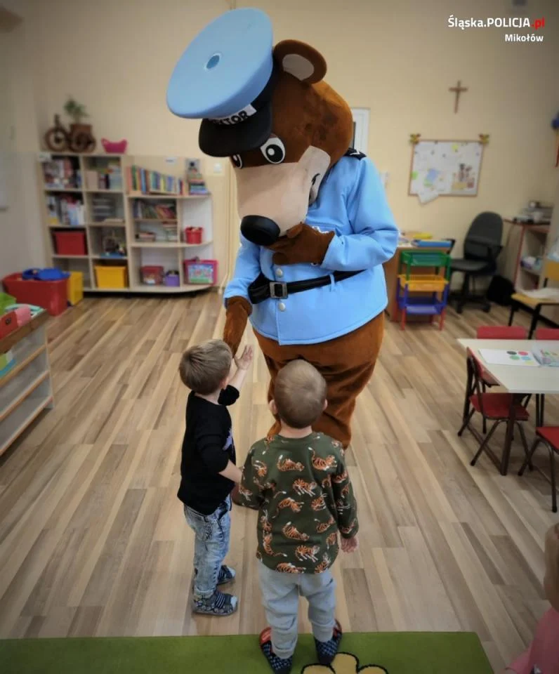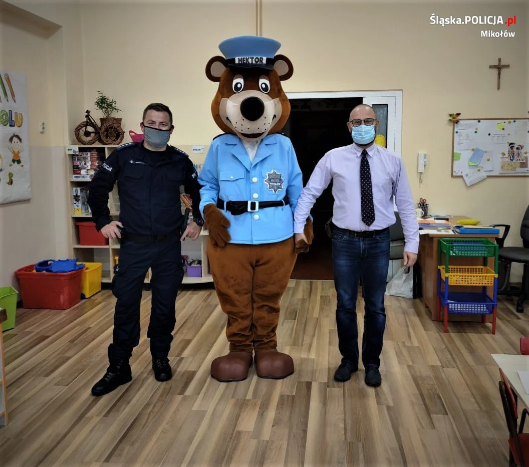 Zdarzało się także, że wraz z dzielnicowymi w placówkach pojawiał się ulubieniec dzieci – sierżant Hektor. Maskotka mikołowskiej Policji od wielu lat jest symbolem działań prewencyjnych, a jej pozytywny przez najmłodszych odbiór doskonale wpływa na zainteresowanie tematyką bezpieczeństwa.