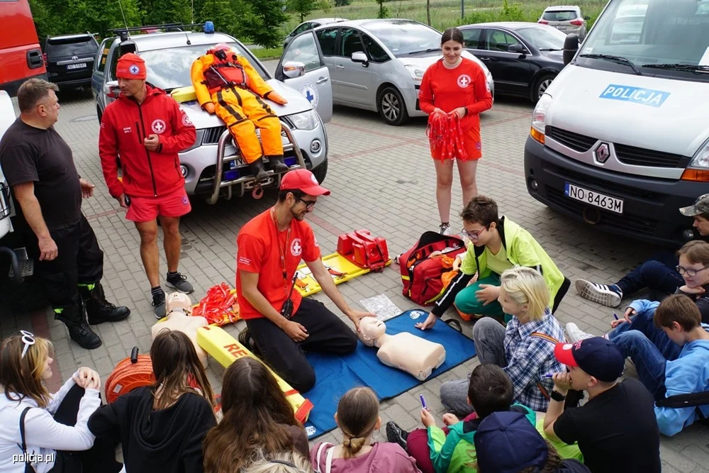 Osoby, które o tej porze pojawiły się przy Kapitanacie na Plaży Miejskiej w Olsztynie miały również okazję obejrzeć pokaz akcji ratowniczej na wodzie przygotowany przez policjantów. Policjanci Biura Prewencji KGP oraz Komendy Wojewódzkiej Policji w Olsztynie oprócz swoich pojazdów przygotowali również zabawy dla najmłodszych, m.in.: tor przeszkód, zawody na torze jazdy dla rowerów i terenową grę planszową. Trochę starsi z kolei mogli porozmawiać na tematy związane z przeciwdziałaniem przestępczości, dowiedzieć się jak działa i jak korzystać z Krajowej Mapy Zagrożeń Bezpieczeństwa oraz jak wygląda proces rekrutacji do Policji.