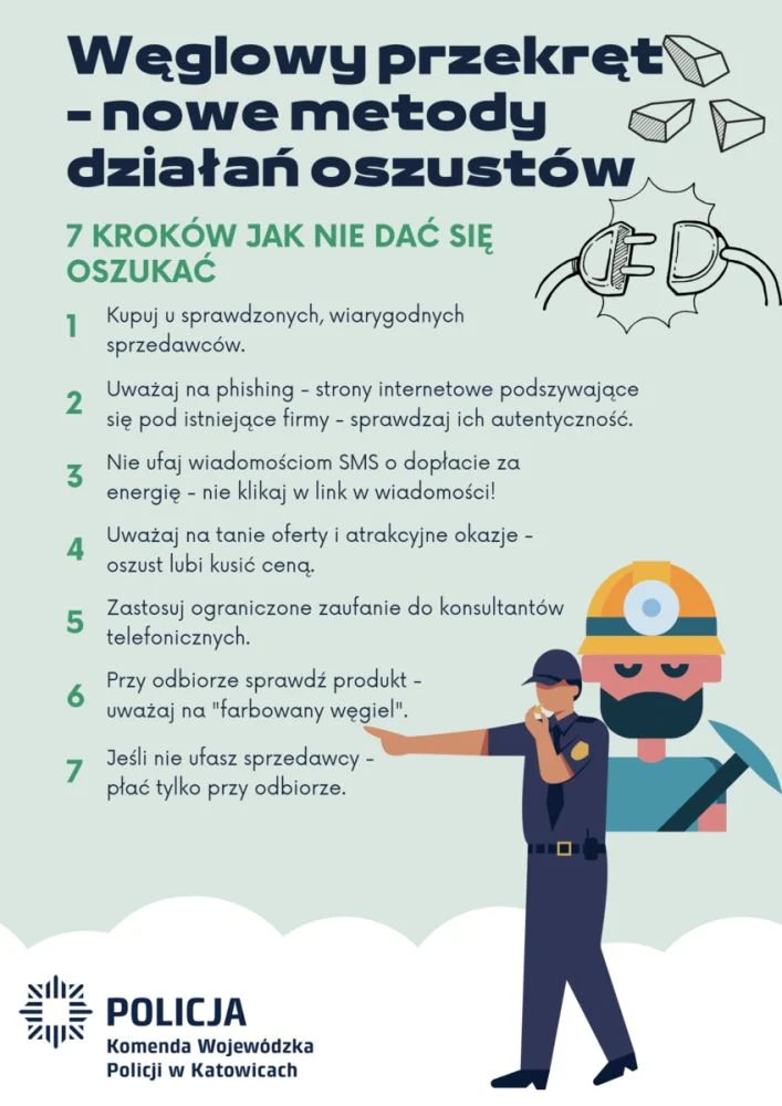 Przestrzegamy przed „okazjami” przy zakupie opału. Bądźmy ostrożni, sprawdzajmy sprzedawców i nie płaćmy „w ciemno”. Poniżej przedstawiamy siedem zasad jak nie dać się oszukać. – apelują policjanci.