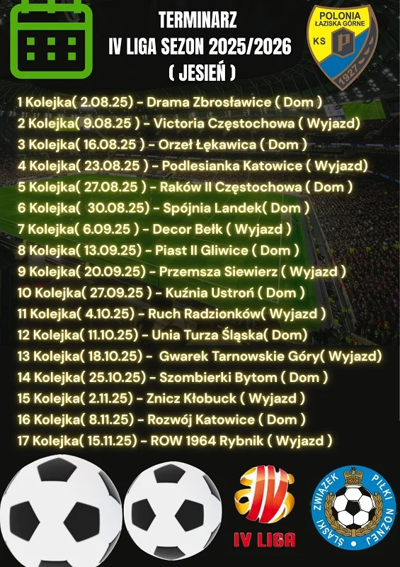 Terminarz meczów Polonii Łaziska Górne – runda jesienna 2025/2026