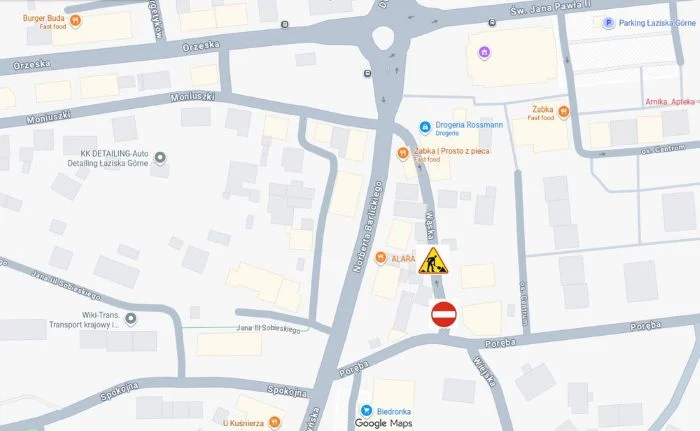 Zamknięcie ul. Wąskiej w Łaziskach Górnych