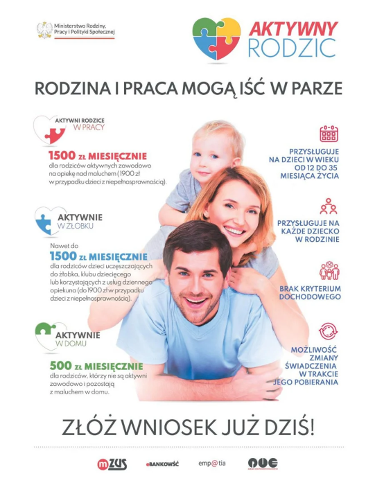 - świadczenie „aktywni rodzice w pracy”