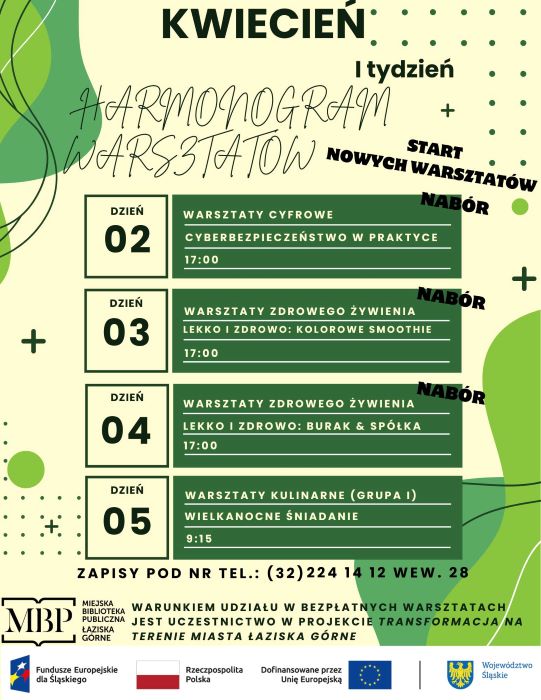 W związku z projektem Transformacja na terenie miasta Łaziska Górne ruszyły zapisy na warsztaty w pierwszym tygodniu kwietnia!