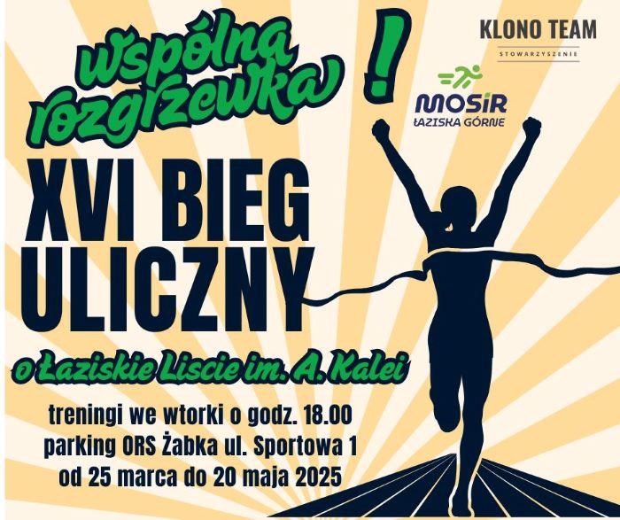 Przed nami 2 miesiące intensywnych przygotowań. MOSiR Łaziska Górne zaprasza wspólne treningi i rozgrzewkę. Treningi, które będą się odbywać w każdy wtorek w terminie 25.03 - 20.05, pomogą Wam się przygotować i złapać biegowego bakcyla.