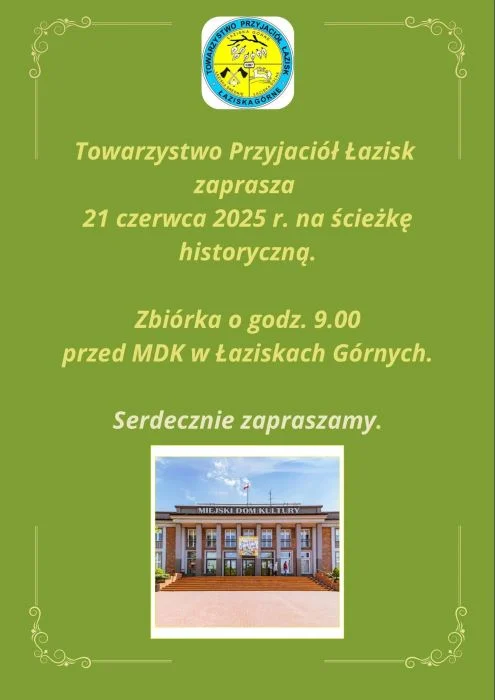Miłośnicy lokalnej historii nie mogą tego przegapić! Towarzystwo Przyjaciół Łazisk zaprasza mieszkańców Łazisk Górnych na wyjątkową ścieżkę historyczną, która odbędzie się w sobotę, 21 czerwca 2025 roku.