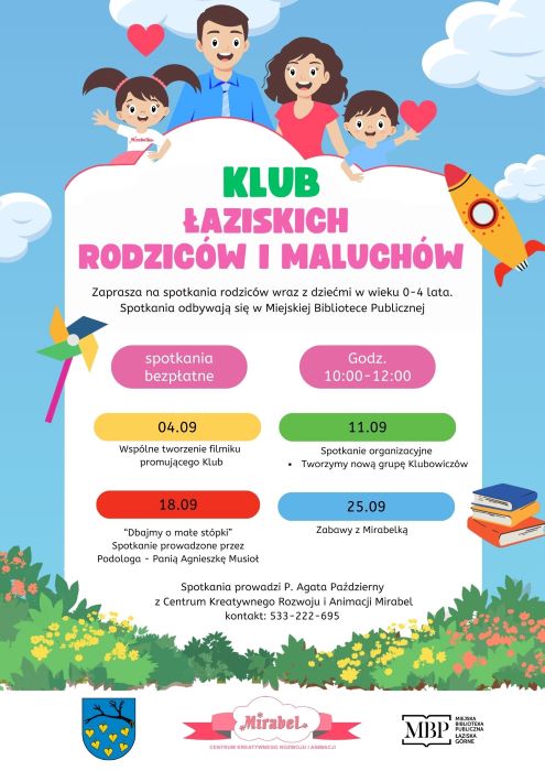 We wrześniu w Miejskiej Bibliotece Publicznej w Łaziskach Górnych ruszyła kolejna edycja spotkań Klubu Łaziskich Rodziców i Maluchów. To doskonała okazja dla rodziców dzieci w wieku 0–4 lata, aby wspólnie spędzić czas, zintegrować się z innymi rodzinami i wziąć udział w ciekawych zajęciach. Co ważne – wszystkie spotkania są bezpłatne!