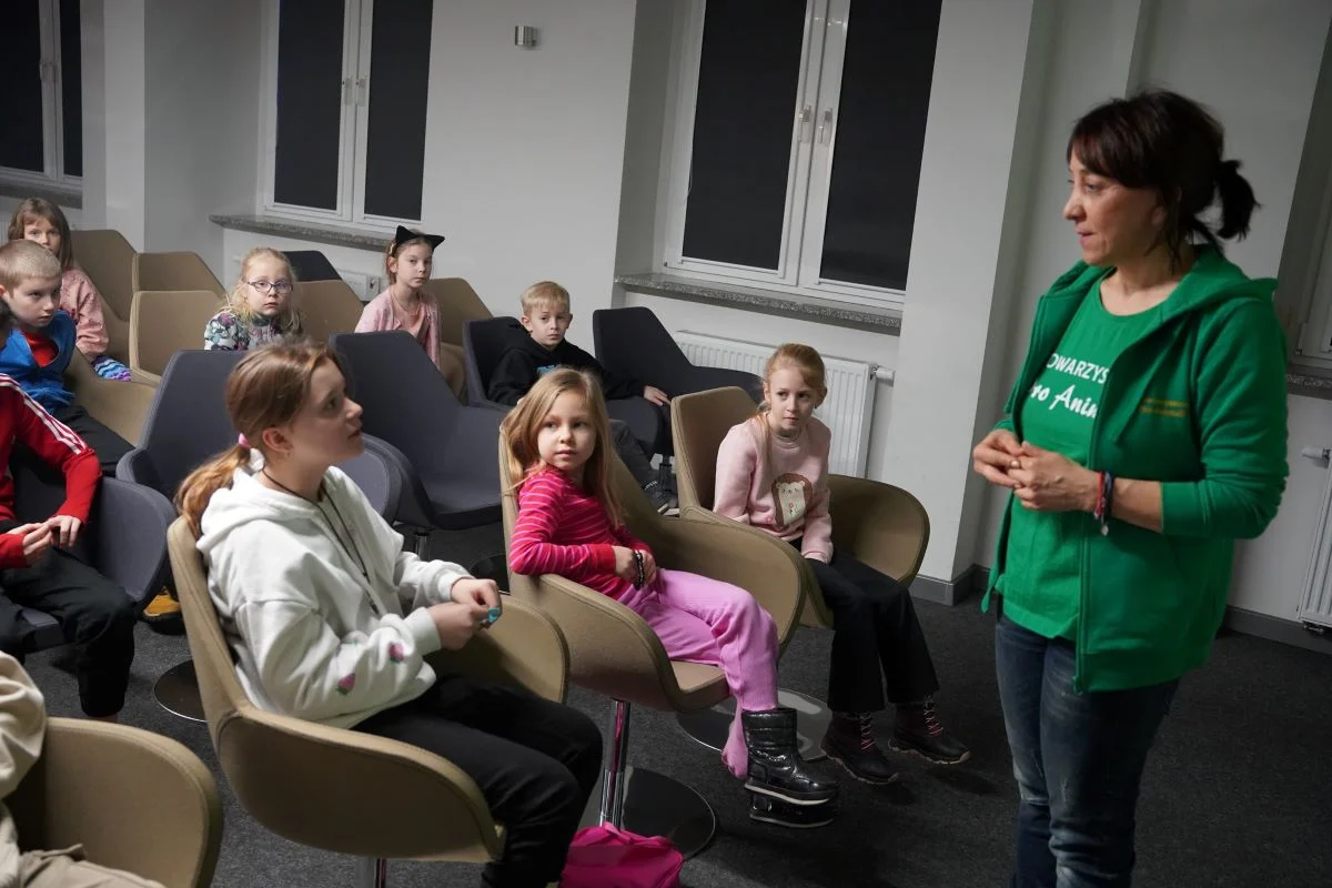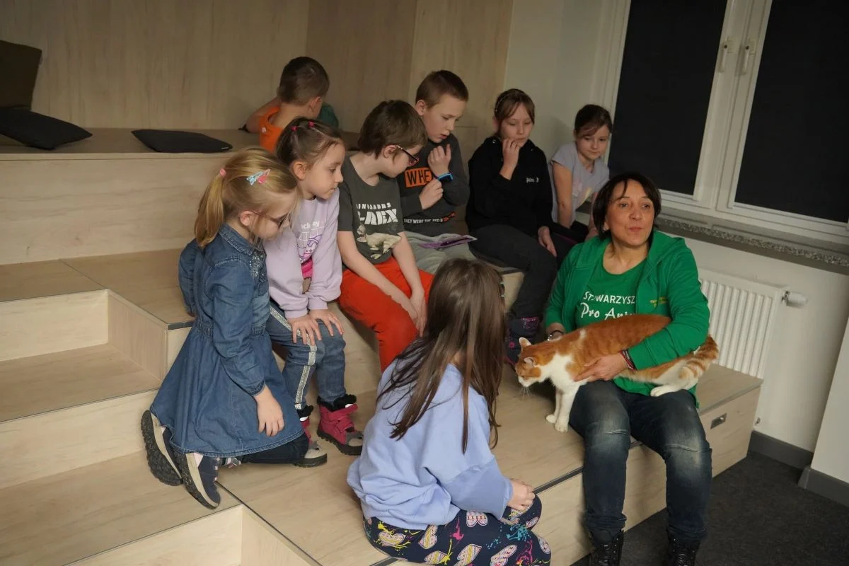 Wspaniałą okazją do świętowania stało się spotkanie z Panią Gabrielą Bartecką ze Stowarzyszenia Pro Animali, która opowiedziała o życiu kotów wolno żyjących i ich potrzebach.