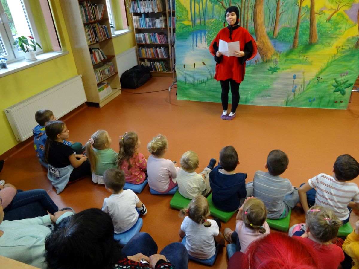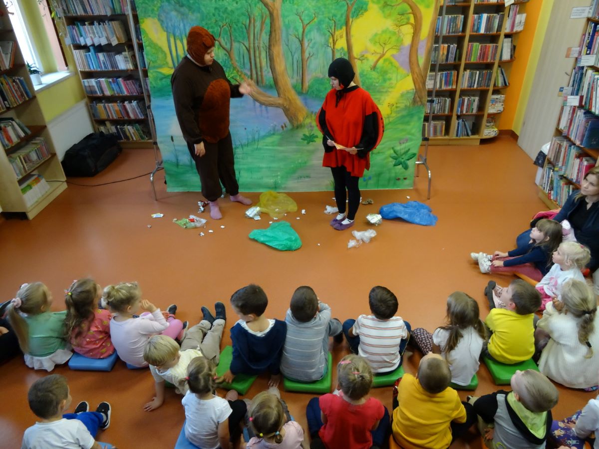 11 października w Miejskiej Bibliotece Publicznej w Łaziskach Górnych oraz w Filii nr 1 w Łaziskach Średnich obejrzeliśmy widowisko teatralne pt. "Uczą króla dzieci segregacji śmieci” w wykonaniu Teatru Maska z Krakowa.
