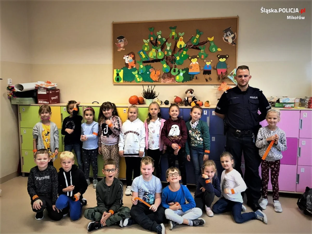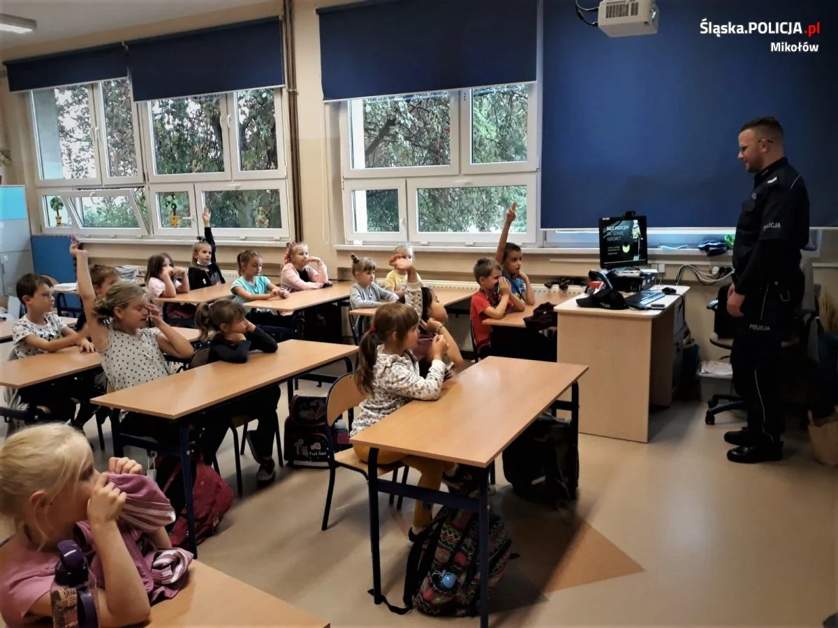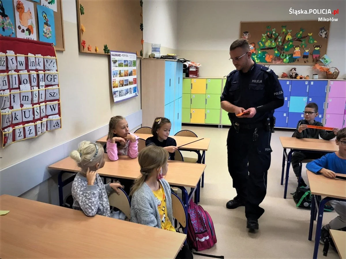 Dzielnicowy łaziskiego komisariatu sierżant sztabowy Sebastian Kapias już kolejny tydzień spotyka się z dziećmi i młodzieżą z terenu miejscowych placówek dydaktycznych. Tym razem odwiedził uczniów Szkoły Podstawowej nr 3 im. Mikołaja Kopernika. Policjant przekonywał, by jego słuchacze wraz z rozpoczętą jesienią, zaczęły „świecić” przykładem i regularnie nosiły ze sobą odblaskowe elementy. Okazuje się, że ten drobny znaczek na odzieży wierzchniej dziecka, zwłaszcza podczas porannej drogi do szkoły znacząco poprawia widoczność pieszego na drodze, a tym samym zwiększa jego bezpieczeństwo.