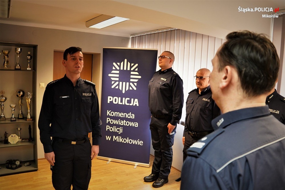 Wczoraj w Komendzie Powiatowej Policji w Mikołowie odbyła się uroczysta odprawa, podczas której podkomisarz Mateusz Serafin został oficjalnie powołany na stanowisko Zastępcy Komendanta Komisariatu Policji w Łaziskach Górnych. Rozkaz wręczył szef garnizonu mikołowskiego podinspektor Dariusz Klimczak.