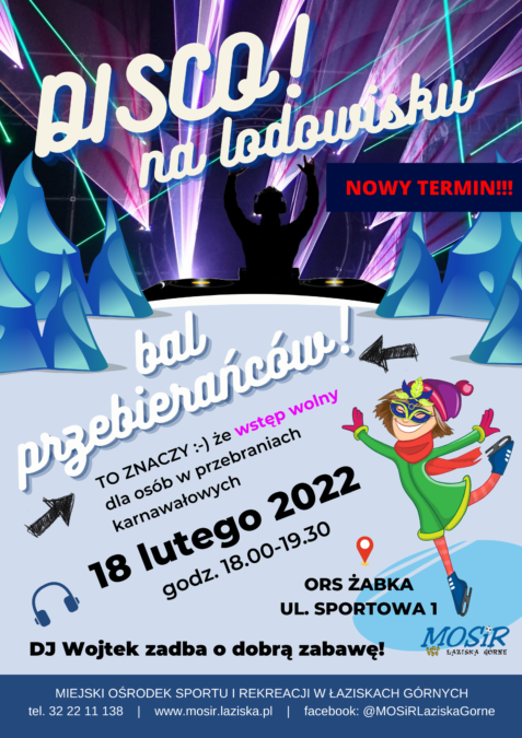 Miejski Ośrodek Sportu i Rekreacji w Łaziskach Górnych zaprasza na disco na lodowisku. Wydarzenie odbędzie się w piątek 18 lutego o godzinie 18:00 na ORS Żabka. Osoby w karnawałowych przebraniach mają wstęp wolny.