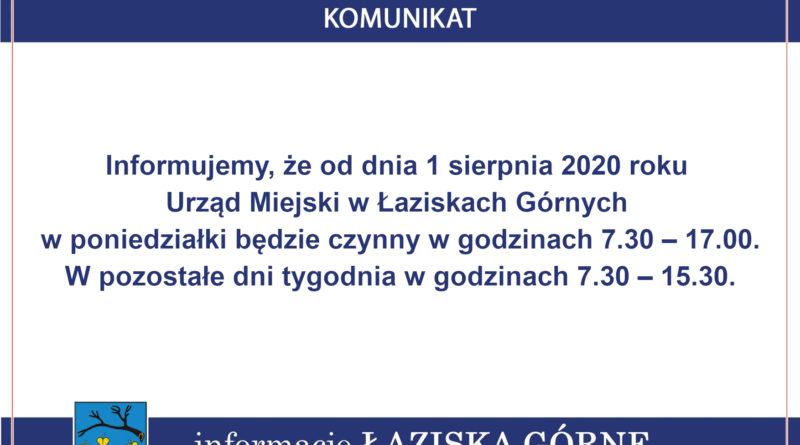 Urząd Miejski w Łaziskach Górnych przedstawia zmiany w godzinach, w których można załatwić wszystkie sprawy.