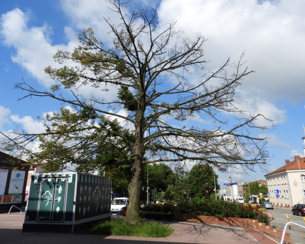 Chora lipa holenderska z placu przed MDK w Łaziskach Górnych zostanie wycięta. W jej miejscu pojawi się nowe drzewo. Sprawdź, co wykazała ekspertyza dendrologiczna.