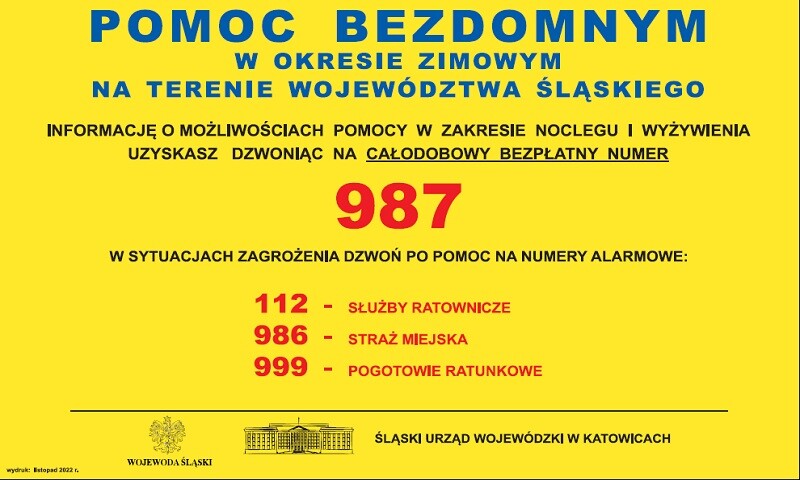 W związku z nadchodzącą zimę w Śląskim Urzędzie Wojewódzkim w Katowicach z dniem 1 listopada br. uruchomiona zostanie, wzorem lat ubiegłych, bezpłatna, całodobowa infolinia o numerze 987 (zarówno z telefonów komórkowych, jak i stacjonarnych).
