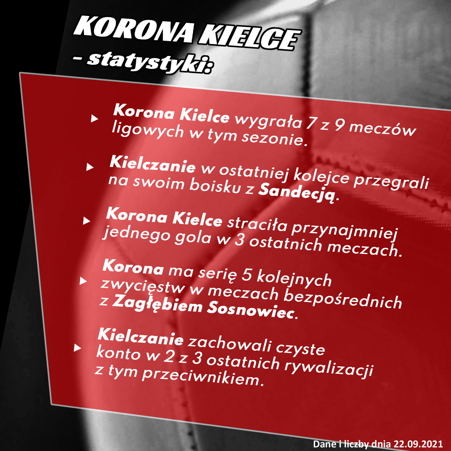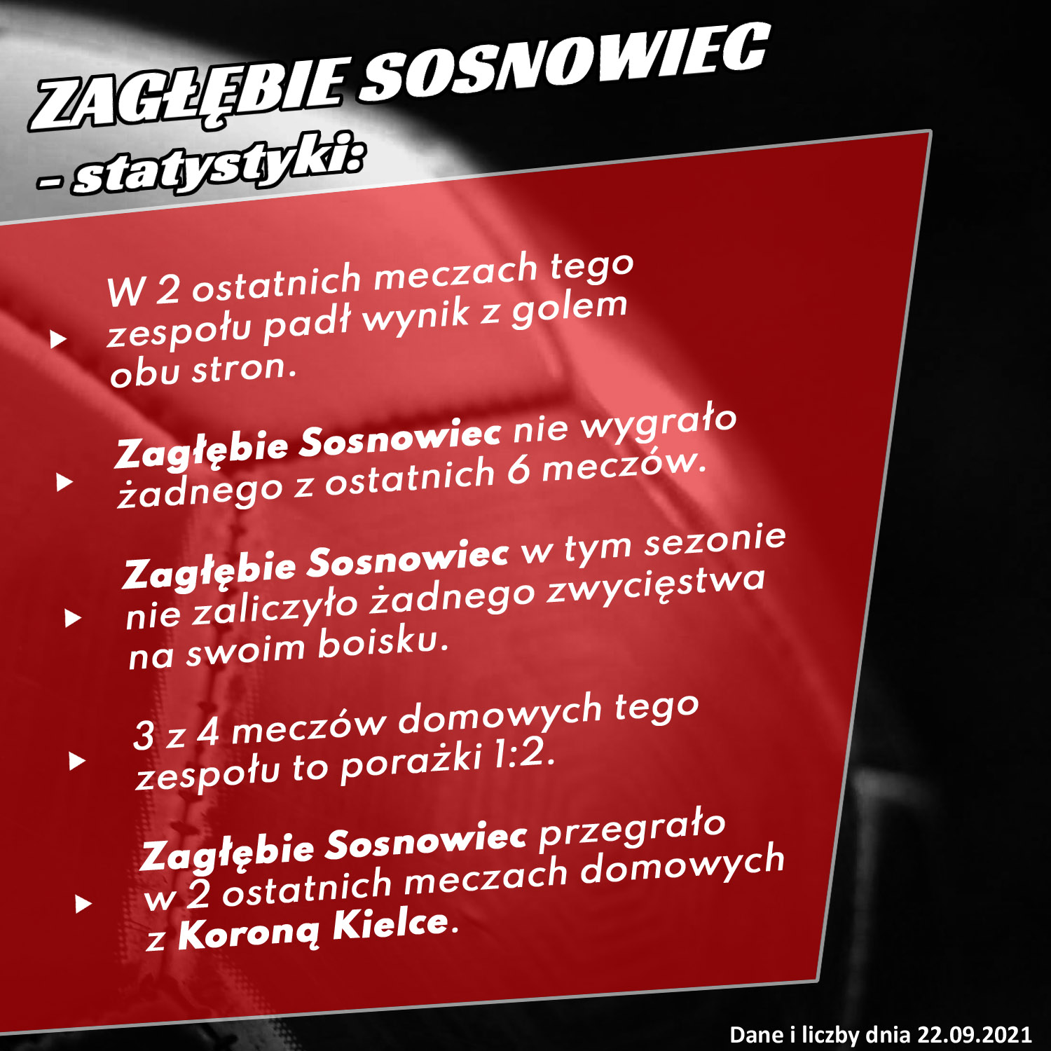 - Korona ma serię 5 kolejnych zwycięstw w meczach bezpośrednich z Zagłębiem Sosnowiec.