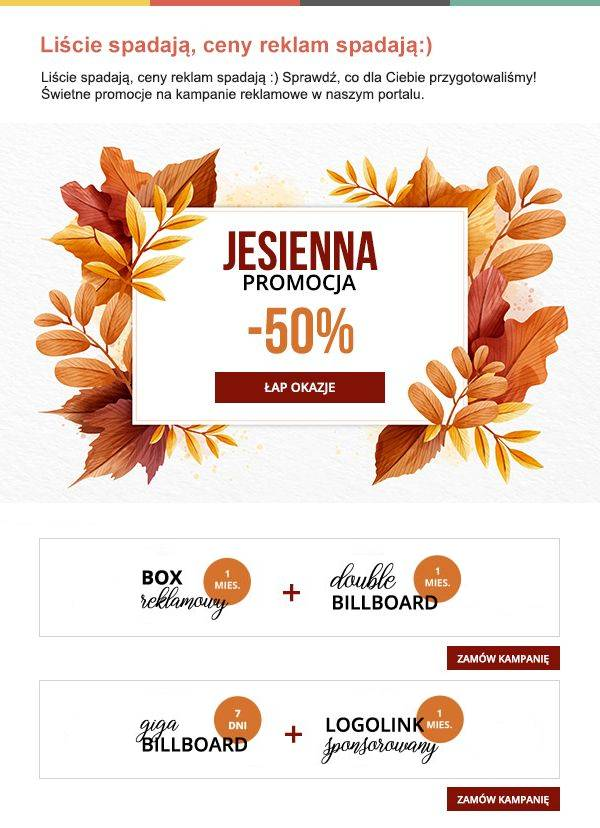 - 7 dni na stronie głównej portalu z opcją dodatkowej promocji na Facebooku,